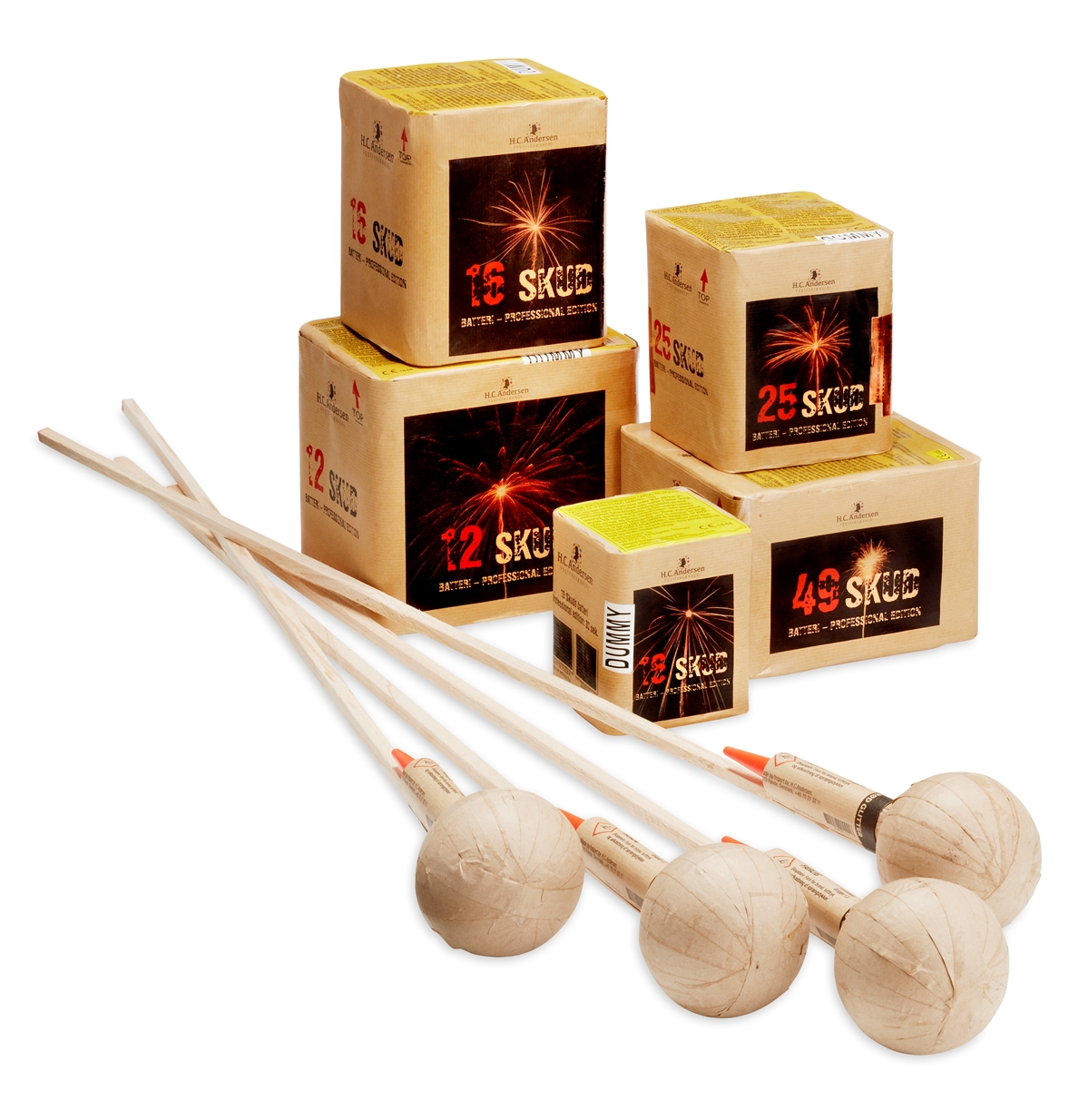 Sortiment inderholder: 1 stk. HCA311 16 skuds batteri, 1 stk. HCA312 12 skuds batteri, 1 stk. HCA308 25 skuds batteri 1 stk. HCA310 49 skuds batteri, 1 stk. HCA313 16 skuds batter 4 stk. HCA111 4" luftbomber.