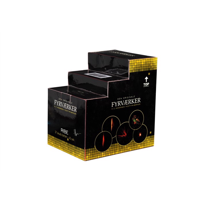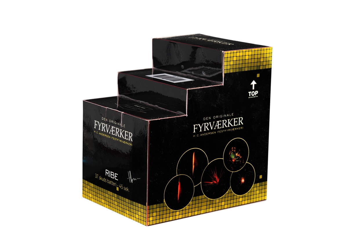RIBE → 37 SKUDS TRAPPE FYRVÆRKERI BATTERI