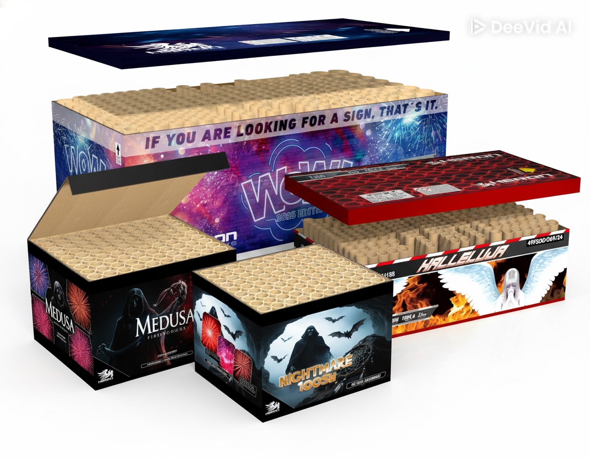 Pakken består af WOW (3.000 g NEM), (Indgår pr. 29/12) Firelion 1.900 g. NEM  (Udgår) HALLELUJA - (1.884 g NEM), Nightmare (820g NEM) og Medusa (720 g NEM). I alt leverer pakken ca. 6.424 g NEM, der omsættes til massive buketter, kraftige finaler og en himmel, der er næsten konstant oplyst.